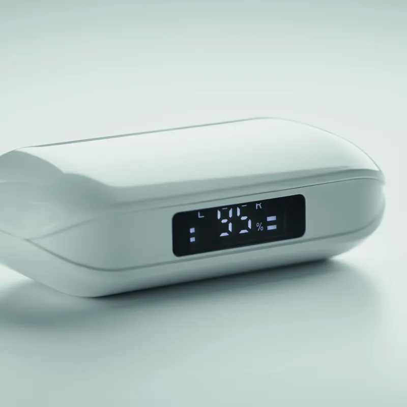 ABS-ből készült TWS (True Wireless Stereo) 5.3 vezeték nélküli sztereó fülhallgató mikrofonnal és 30 mAh beépített akkumulátorral. Üzemidő kb. 3 óra. Automatikus párosítás. C típusú töltőkábellel és 250 mAh töltőállomással szállítjuk.