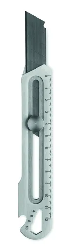 Rozsdamentes acél tapétavágó kés 8 szénacél pengével, üvegnyitóval, csavarkulccsal és vonalzóval.