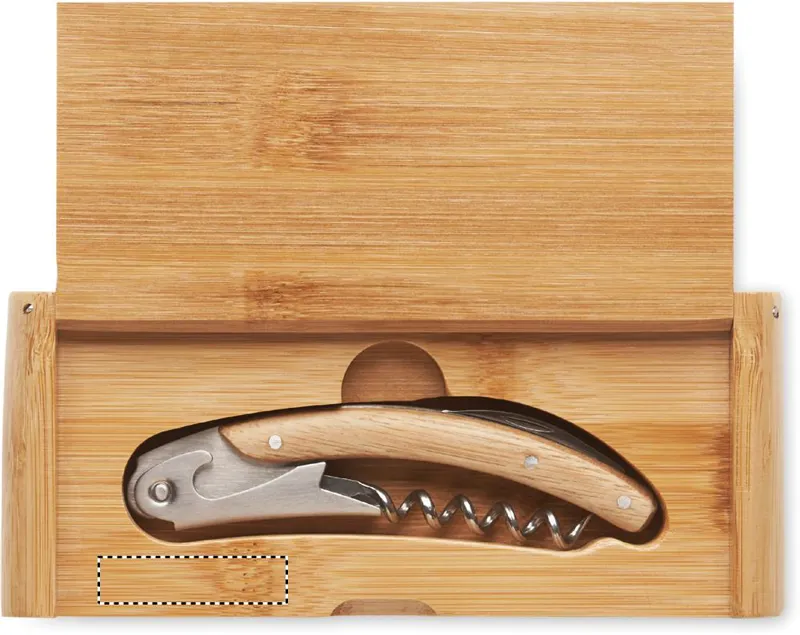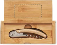 Rozsdamentes acél pincérkés bambusz markolattal, üvegnyitóval, dugóhúzóval. Bambusz díszdobozban szállítjuk. A bambusz természetes anyag, színében, mintázatában és méretében esetenként eltérő lehet. Szivárgásmentes.