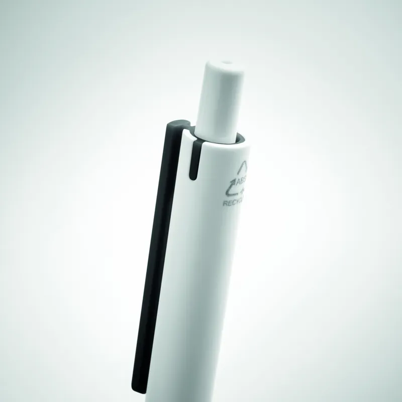 Nyomógombos golyóstoll újrahasznosított ABS-ből. Kéken író betéttel.