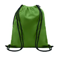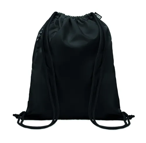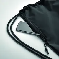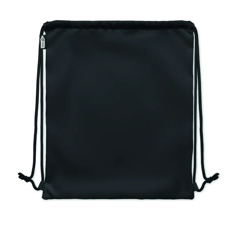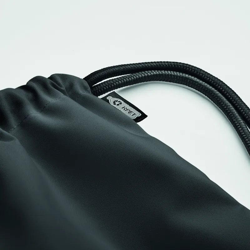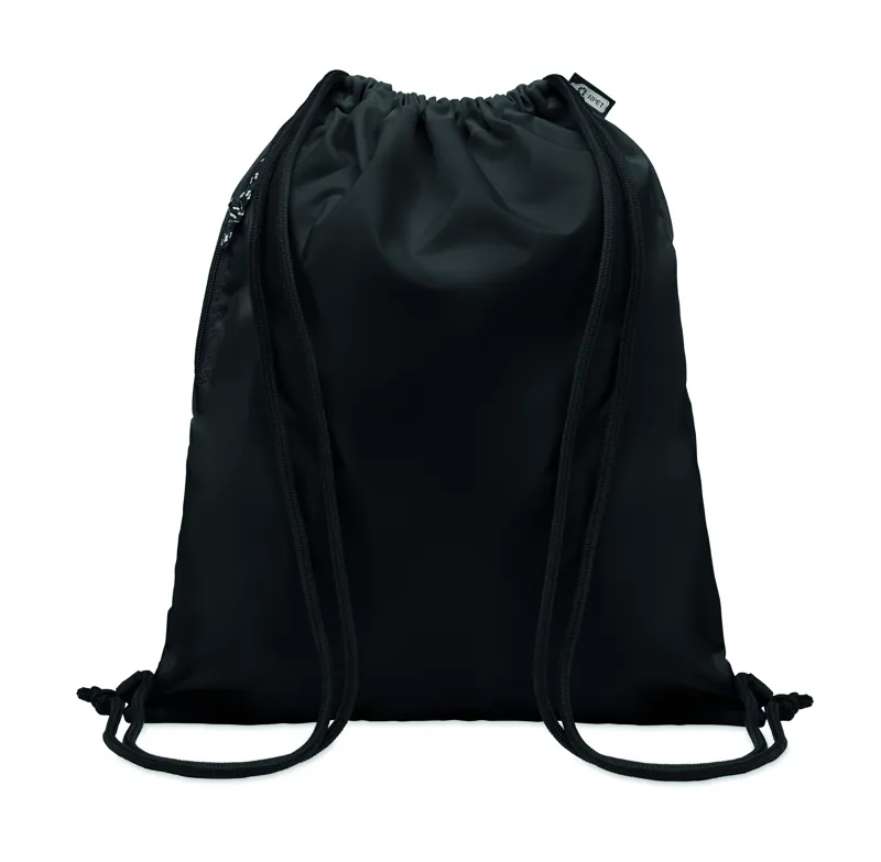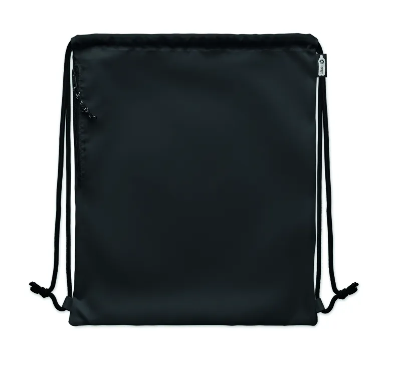 Nagyméretű húzózsinóros táska 300D RPET poliészterből, cipzáras külső oldalsó zsebbel.