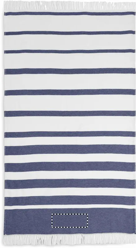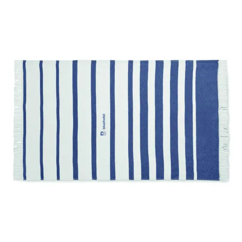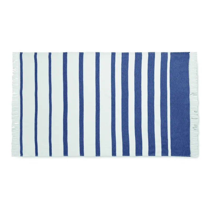 Újrahasznosított hamam vagy strandtörölköző. 70% újrahasznosított pamut és 30% újrahasznosított SEAQUAL® YARN poliészter. 300 g/m². 100x170 cm. A SEAQUAL INITIATIVE világszerte az óceánokat tisztító szervezetekkel dolgozik együtt, hogy értéket adjon a visszanyert hulladéknak. EU-ban gyártva.