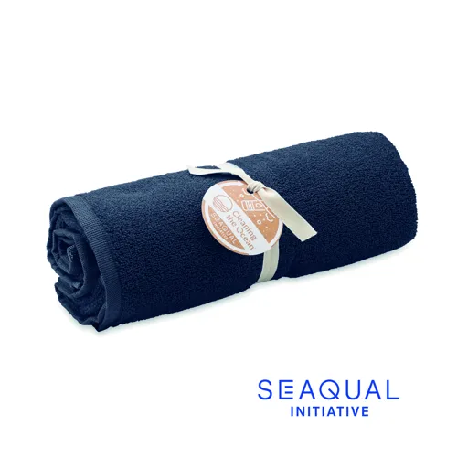 Újrahasznosított öko jacquard fürdő vagy strandtörölköző. 70% újrahasznosított pamut és 30% újrahasznosított SEAQUAL® YARN poliészter. 500 g/m². 100x170 cm. A SEAQUAL INITIATIVE világszerte az óceánokat tisztító szervezetekkel dolgozik együtt, hogy értéket adjon a visszanyert hulladéknak. EU-ban gyártva.