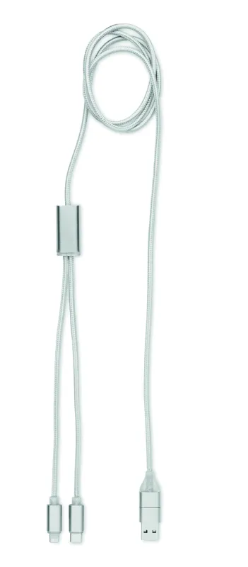 CABLONG 2 az 1-ben hosszú töltőkábel ezüst