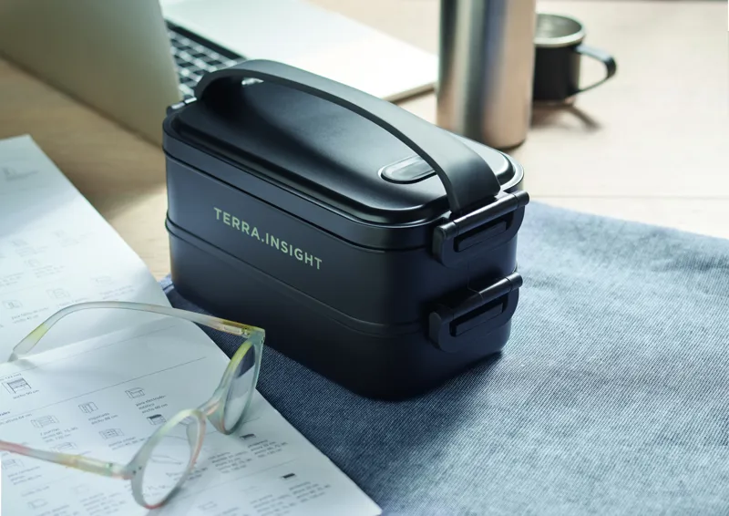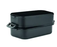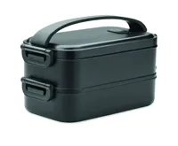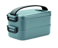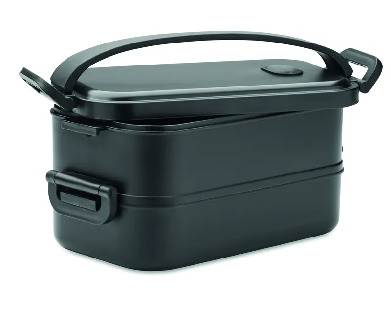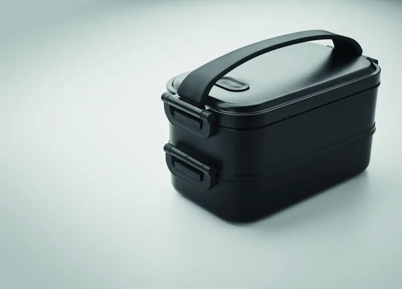 PP emeletes uzsonnásdoboz oldalsó zárócsatokkal, kivehető elválasztó résszel és légmentesen záródó fedéllel. Űrtartalom: 800 ml (2x).