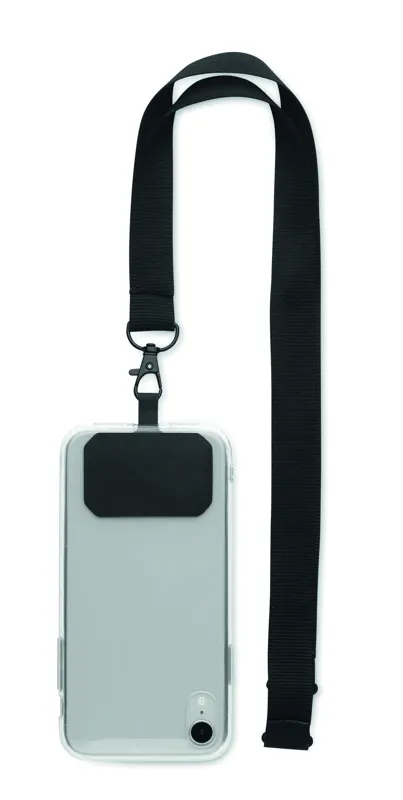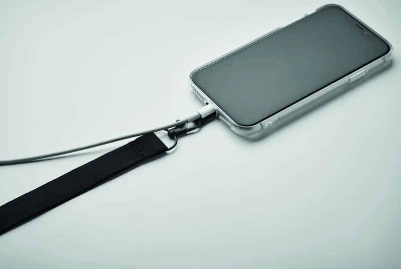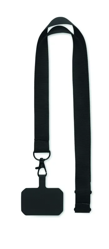 Poliészter telefontartó nyakpánt biztonsági oldózárral. 2 cm széles.