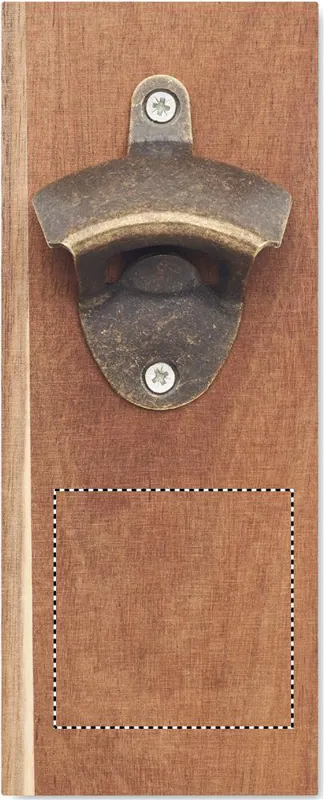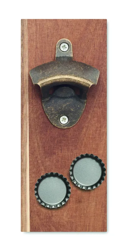 Falra szerelhető üvegnyitó akáciafából és vasból. Erős mágnessel rendelkezik, amely megakadályozza a kupak leesését és a fém felületekre (hűtőszekrényre, grillezőre) való rögzítést is lehetővé teszi.