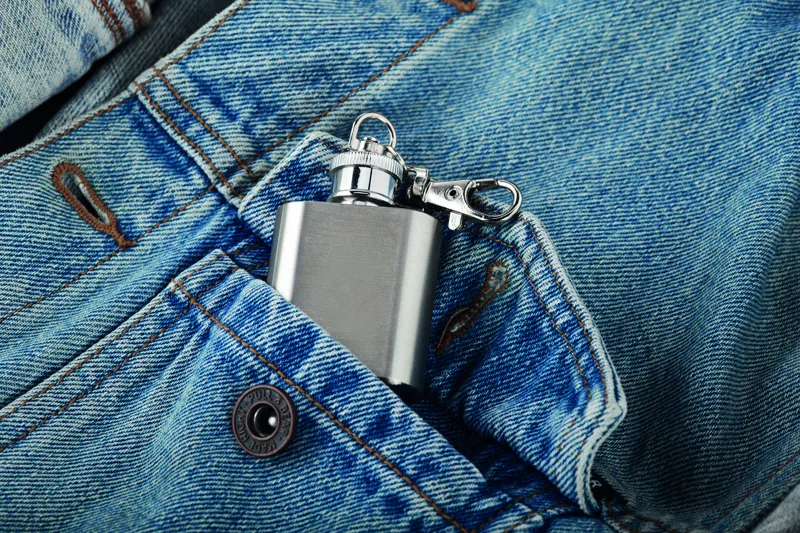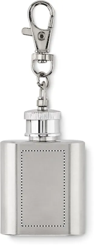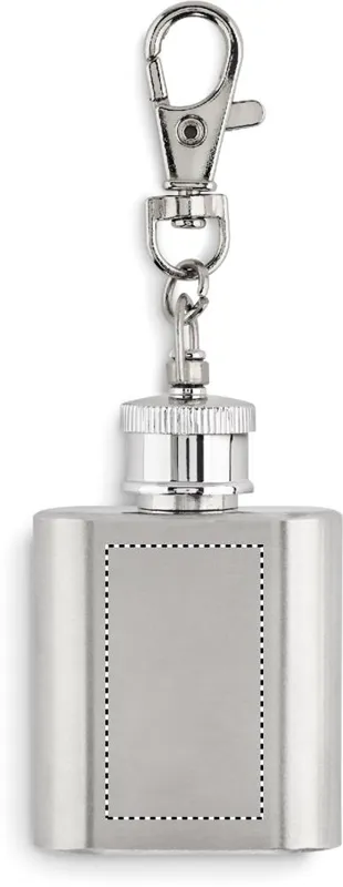 Laposüveg kulcstartó rozsdamentes acélból. Űrtartalom: 28 ml.