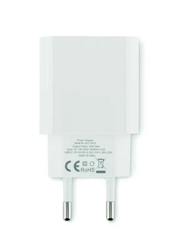 EU 2 pólusú fali adapter/töltő. Támogatja a gyorstöltési technológiát (20W). 1 C típusú csatlakozóval. 3.0 PD (Power Delivery) gyorstöltési támogatással. Nem alkalmas az Egyesült Királyságban való használatra.
