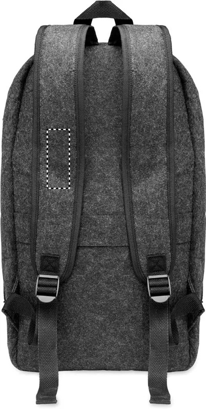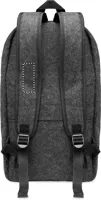 13 colos laptop hátizsák RPET filcből, párnázott vállpánttal, fő belső rekesszel. Cipzáras belső rekesz. Hátoldalán gurulós bőröndre illeszkedő pánttal.