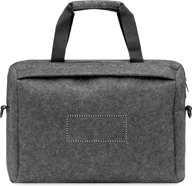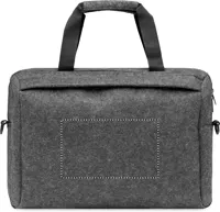 15 colos laptop táska RPET filcből, egy fő belső rekesszel és egy cipzáras elülső zsebbel. Levehető és állítható vállpántokkal. Hátoldalán gurulós bőröndre illeszkedő pánttal.