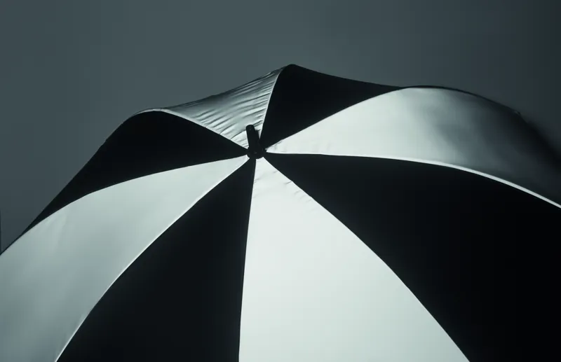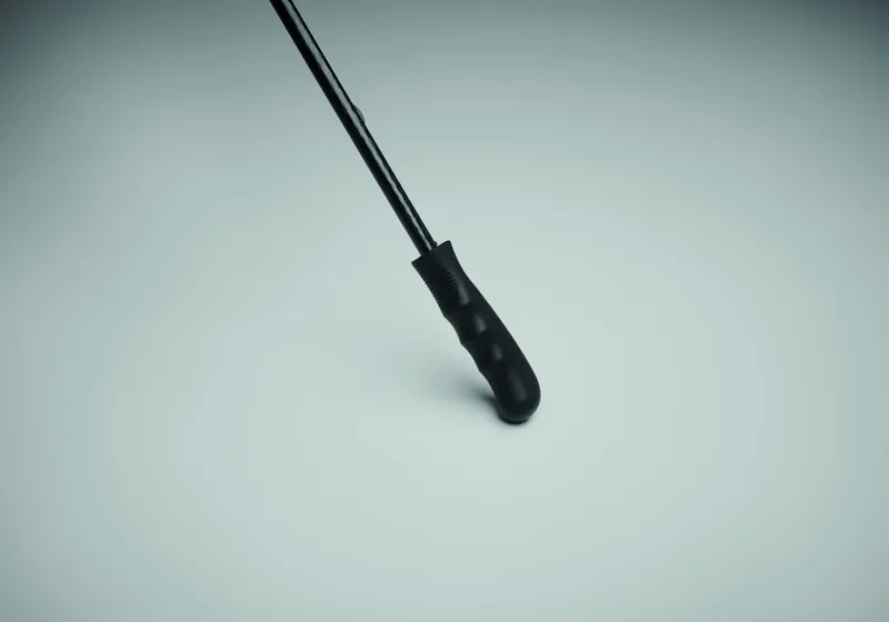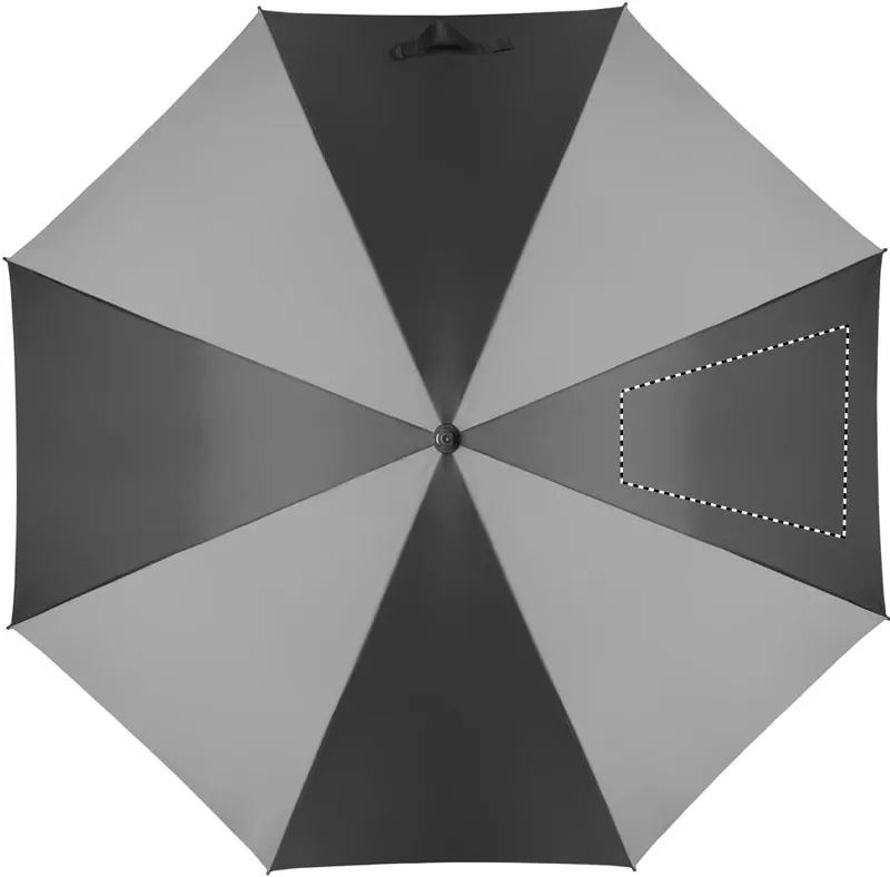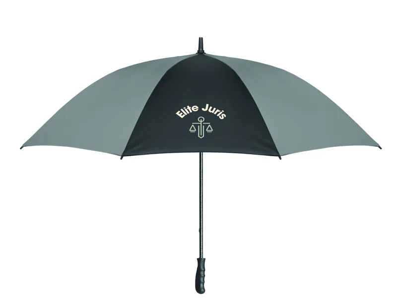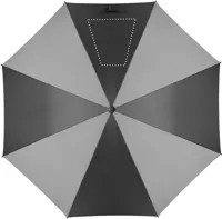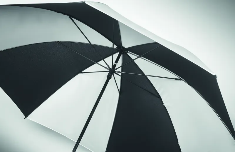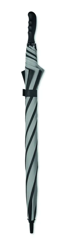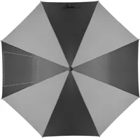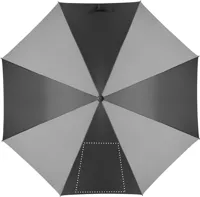 30 colos, manuális nyitású és záródású, szélálló esernyő 4 panelen 190T nyersselyemből és 4 panelen fényvisszaverő anyagból, üvegszálas vázzal, bordákkal és rúddal. Egyenes ABS markolat gumiborítással.