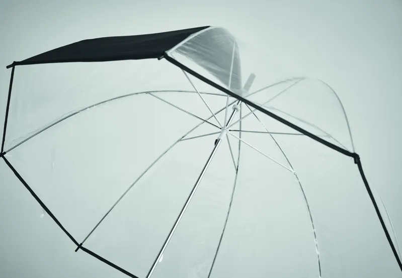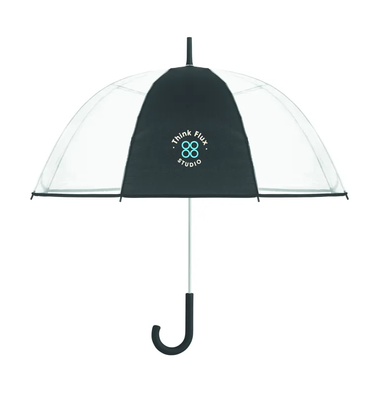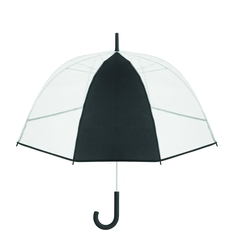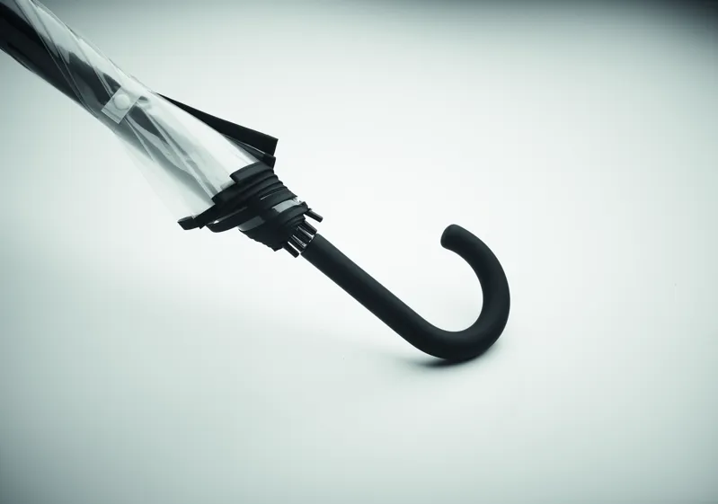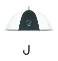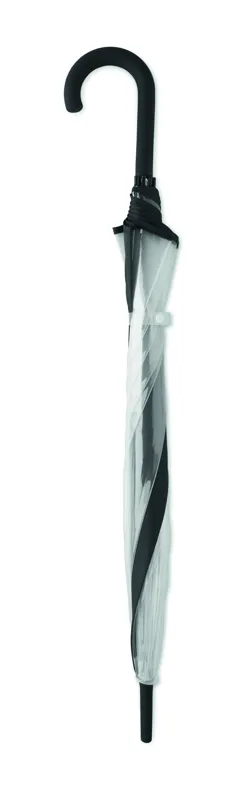23 colos egyenes esernyő POE anyagból, 1 emblémázható poliészter panellel. Manuális nyitású. Üvegszálas bordák és váz. Krómozott rúd műanyag végekkel. Gumiborítású markolat.