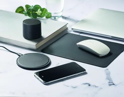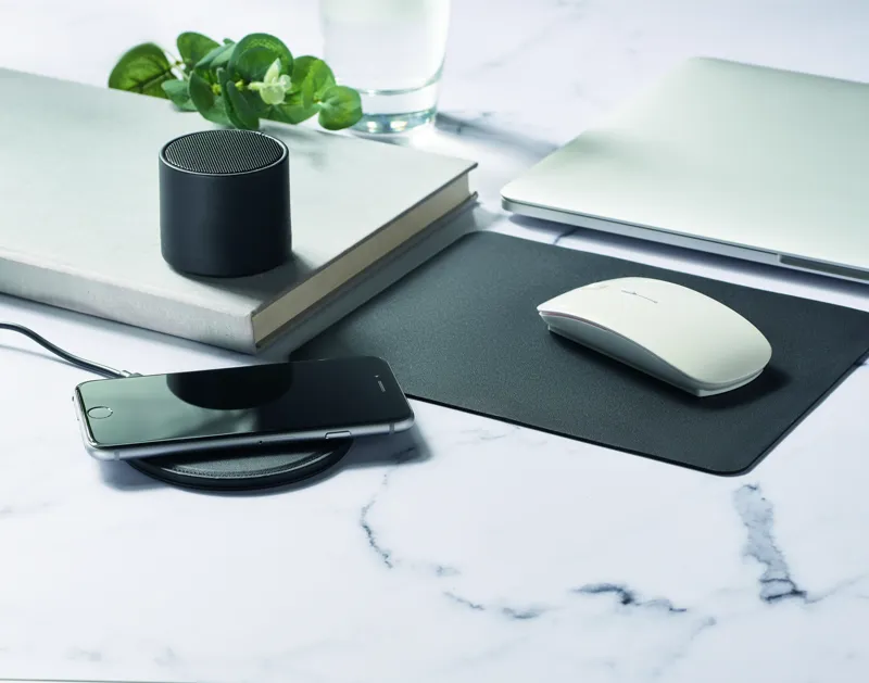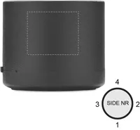 5.0 vezeték nélküli hangszóró ABS és 58%-ban újrahasznosított PU burkolattal (40% újrahasznosított poliészter és 18% újrahasznosított PU) és LED fényjelzéssel. Teljesítmény: 3W, 3 Ohm és 5V. Üzemidő kb. 3 óra.