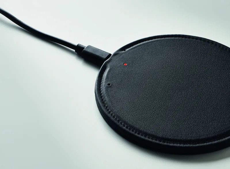 Újrahasznosított PU vezeték nélküli töltő. 58%-ban újrahasznosított anyag (40% újrahasznosított poliészter és 18% újrahasznosított PU). Teljesítmény: DC 9V/1 ,67A (15W) a gyorstöltéshez.