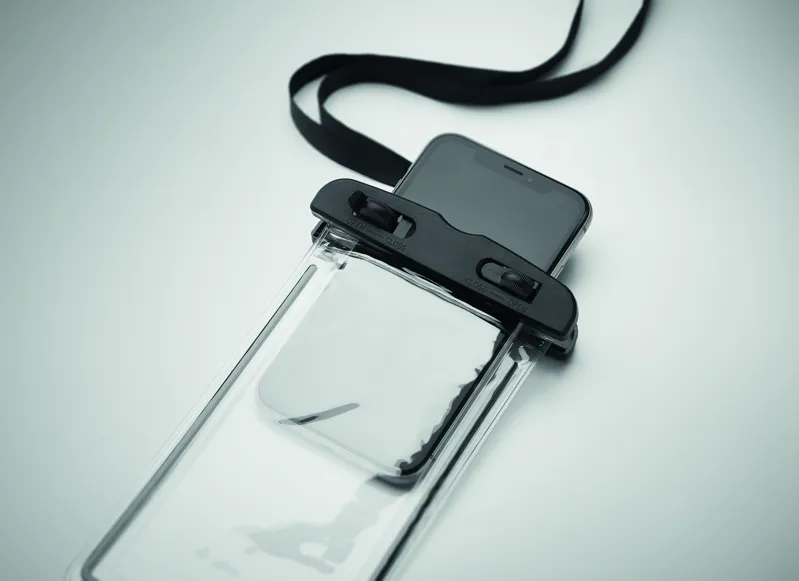 Vízálló okostelefon tartó tok állítható és levehető pánttal. IPX 6 víz elleni védettséggel. 6,7 colos méretig.