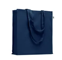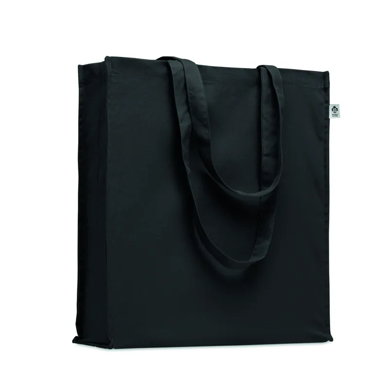 Biopamut bevásárlótáska hosszú fülekkel, toldással. 220 g/m² vastag anyag.