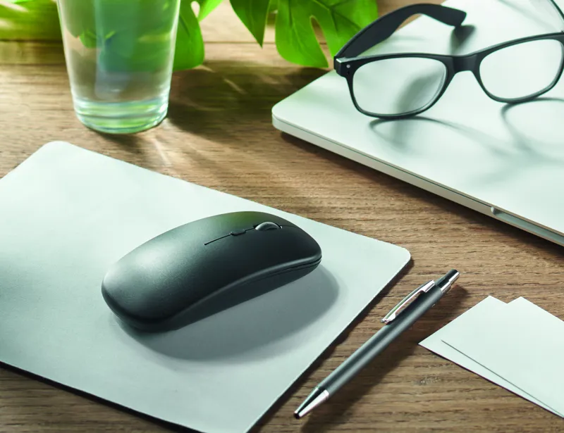 Vezeték nélküli optikai egér ABS-ből, USB-n keresztül tölthető 500 mAh-s akkumulátorral.