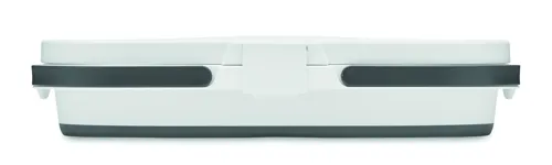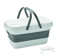 Összecsukható szilikon piknikkosár, asztalkaként is használható PP tetővel. Kapacitás: 16 l.