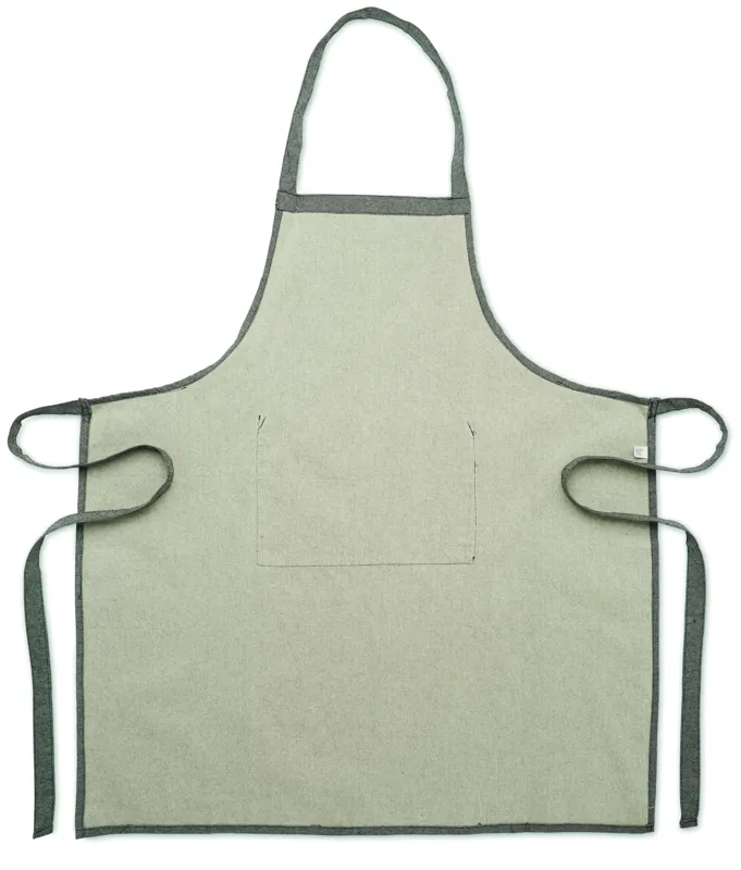 Állítható konyhai teljes kötény 1 elülső zsebbel, 220 g/m² vastag újrahasznosított pamutból. 80% újrahasznosított pamut, 20% hagyományos pamut