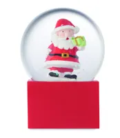 Kis karácsonyi üveg hógömb dísz, polirezin talapzattal.