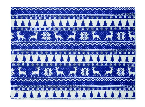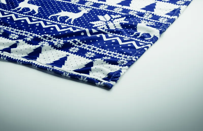 190 g/m² vastag RPET korall fleece takaró téli mintával. Szalaggal átkötve, emblémázható kártyával szállítjuk.
