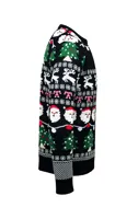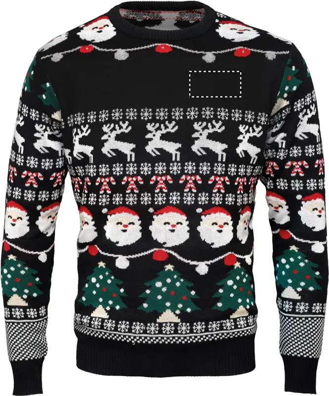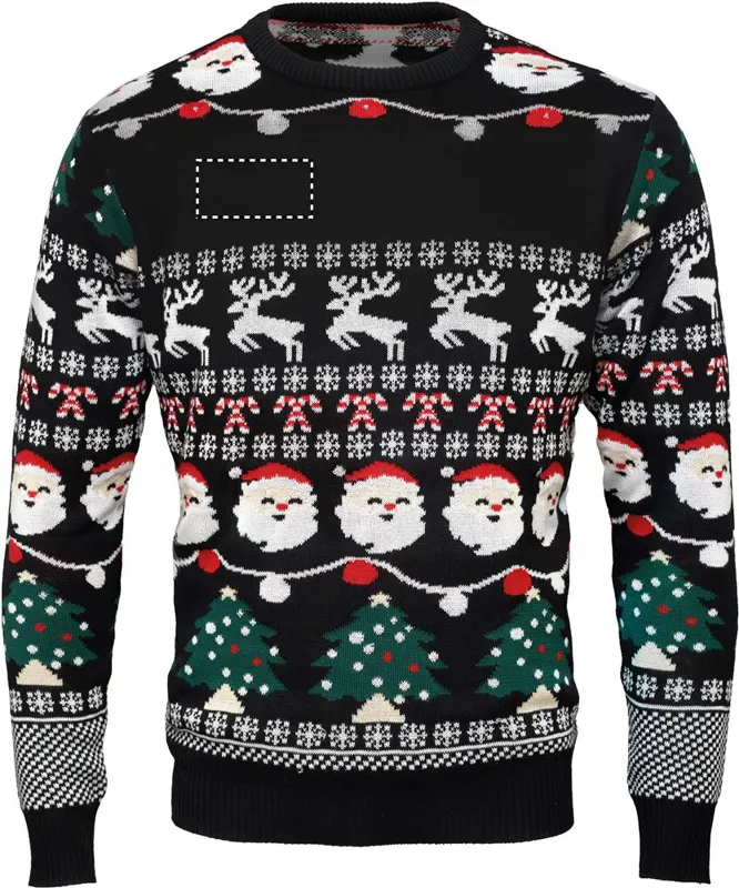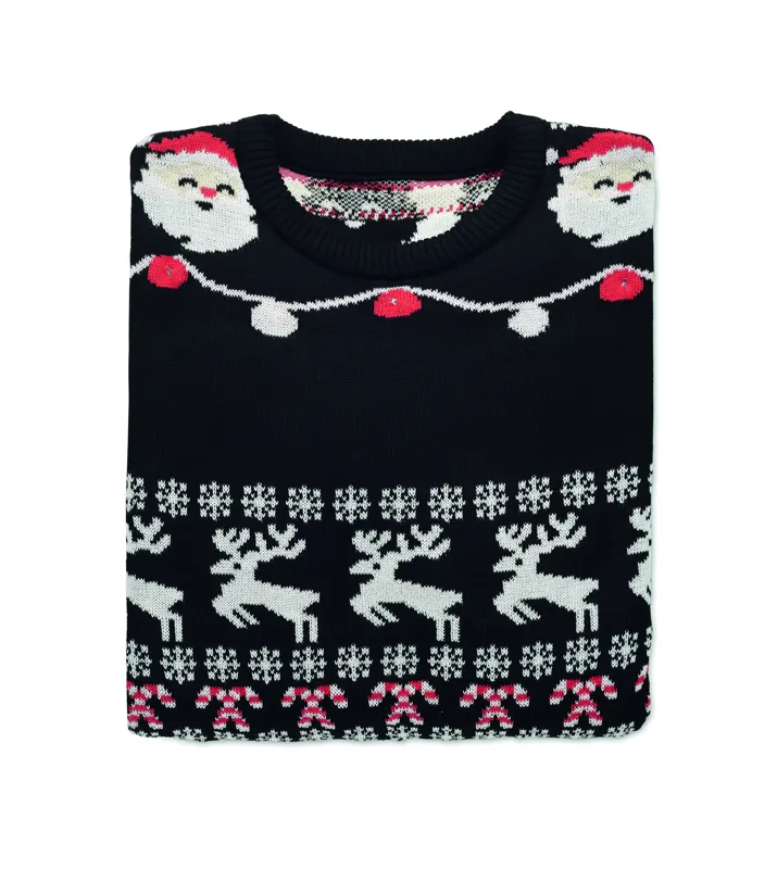 Karácsonyi pulóver akrilból, 10 LED-es fényfüzér dekorációval. Méret: S/M. Jelenjen meg stílusosan a munkahelyén vagy a családi karácsonyi vacsorán ebben a karácsonyi mintás pulóverben. Kivehető elemtartó. A működéshez szükséges 2 db CR2032 elemmel szállítjuk.