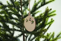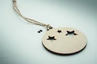 Fából készült gömbdísz alakú függeszték juta zsinórral, lucfenyő magokkal. Kraft borítékban. EU-ban gyártva.