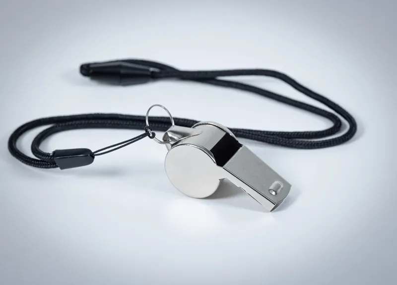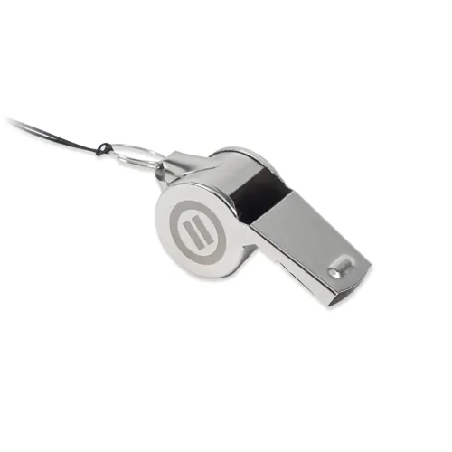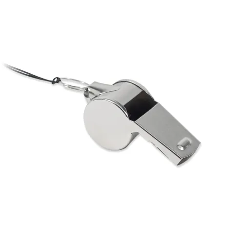 Fém síp nyakpánttal, biztonsági oldózárral.