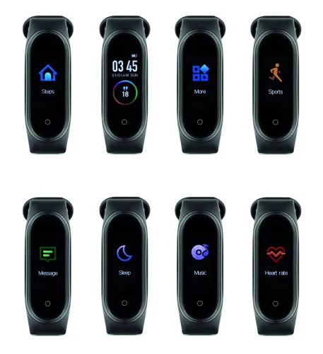 5.0 vezeték nélküli egészségügyi okosóra (health watch) ABS-ből, szilikon szíjjal. 0,96 colos érintős LCD kijelző. Újratölthető 90 mAh lítium-polimer elem. iOS és Android rendszerre egyaránt ingyenesen elérhető alkalmazással (HryFine) működik.