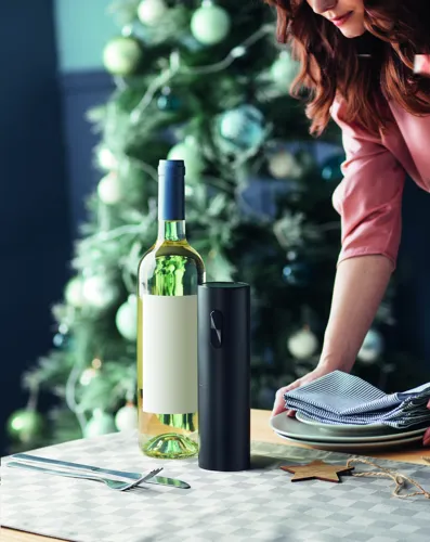Elektromos dugóhúzó, fekete matt ABS burkolattal. 4 db AAA elemmel működik, elem nélkül szállítjuk.