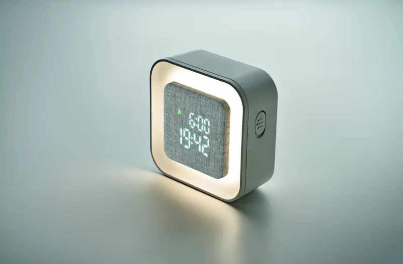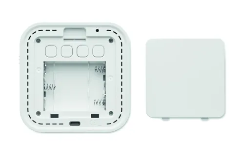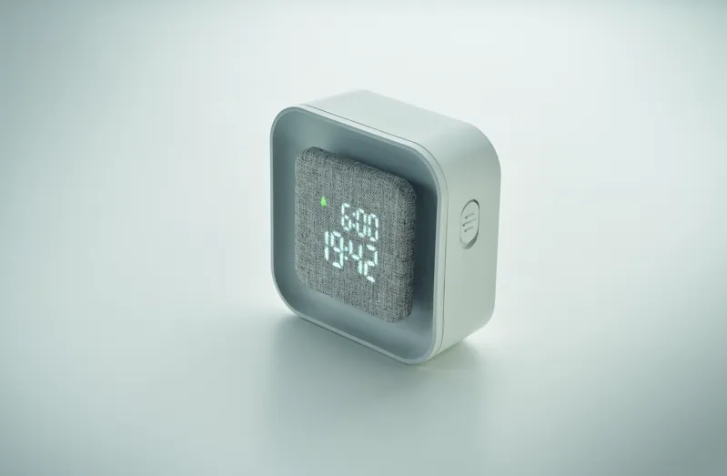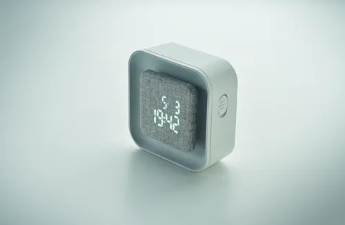 LED-es ébresztőóra újrahasznosított ABS-ből és RPET-ből. Állítható hangulatfénnyel. Naptári év kijelzése csak ébresztő üzemmódban. C- típusú kábelen keresztül tölthető és/vagy 3 db AA elemmel működtethető.