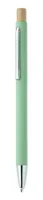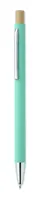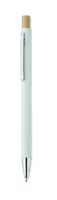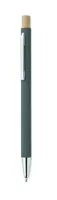 Újrahasznosított alumínium golyóstoll bambusz nyomógombbal, ezüst színű heggyel és klipsszel. Kéken író betéttel.