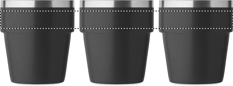 Duplafalú pohár újrahasznosított rozsdamentes acélból (90% újrahasznosított rozsdamentes acél és 10% rozsdamentes acél). Rakásolható. Űrtartalom: 250 ml.