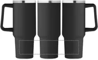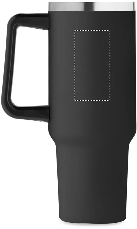 Duplafalú, újrahasznosított rozsdamentes acél pohár, beépített PE- szívószálas fedéllel. Űrtartalom 1200 ml. (90% újrahasznosított rozsdamentes acél és 10% rozsdamentes acél).