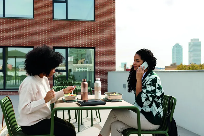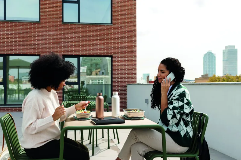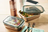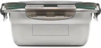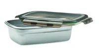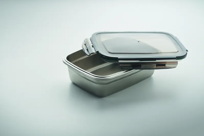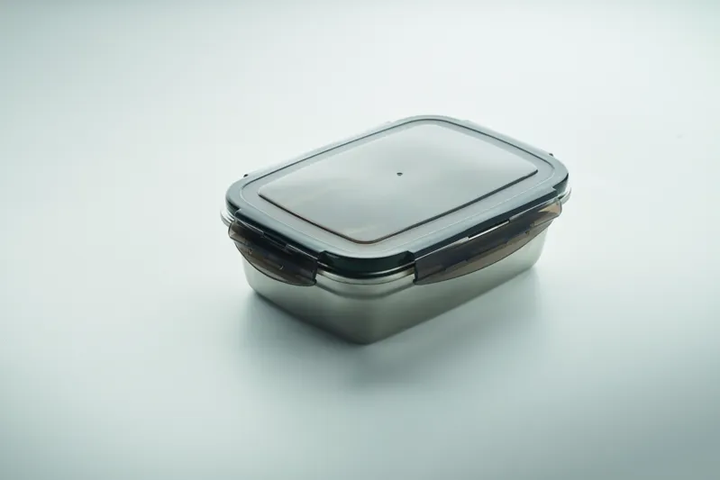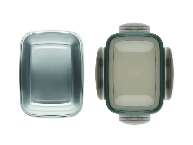 Újrahasznosított, rozsdamentes acél uzsonnásdoboz, PP fedéllel és 4 oldalas kattintós záródással. Űrtartalom: 850 ml.