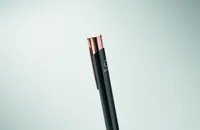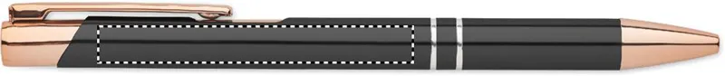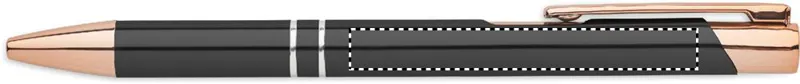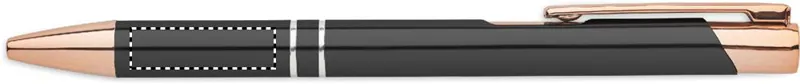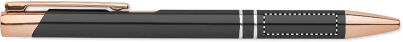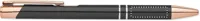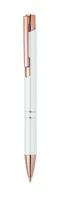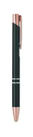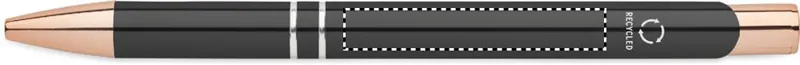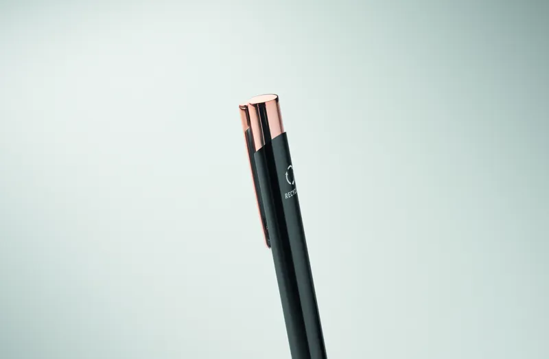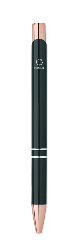 Nyomógombos golyóstoll újrahasznosított alumíniumból, rózsaarany részletekkel. Kéken író betéttel.