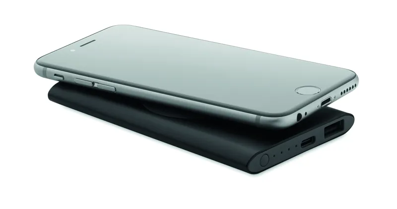 15W-os vezeték nélkül töltő 5000 mAh powerbank külső akkumulátor újrahasznosított alumíniumból. Teljesítmény: DC5V/2A. Bemenet: C-típusú. Kimenet: 1x C-típusú és 1x USB-A.