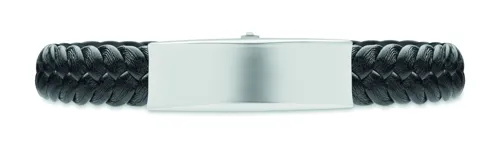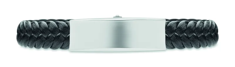 Fonott műbőr karkötő, polírozott acél részletekkel. Csukló körméret: 21 cm.