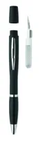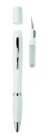 Golyóstoll TWS tisztító készlettel. A tolltestben TWS (True Wireless Stereo) fülhallgatótisztító készlet található: fém tisztító pálca, szivacs és kefe. Kéken író betéttel.