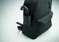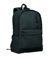 15 colos laptop hátizsák fogyasztás előtti újrahasznosított pamutból. Nagy elülső cipzáras rész belső laptop rekesszel. Kis cipzáras elülső zseb. Két oldalsó nyitott zseb. Párnázott hát, alj és vállpántok. 450 g/m².