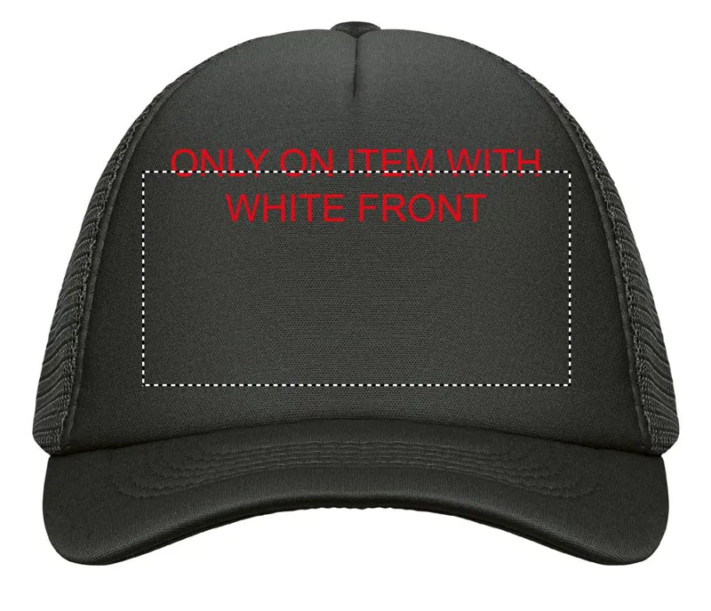 5 paneles poliészter 140-150 gr/m2 kamionos sapka. Állítható műanyag zárórész. Fehér elülső panel és színes napellenző jersey poliészter anyagból. A többi panel hálós anyagból. Méret: 7 1/4.