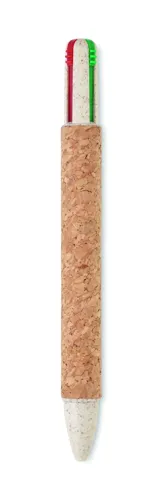 4 színű nyomógombos golyóstoll parafa tolltesttel és búzaszalma (50%) és ABS műanyag (50%) szerelvényekkel. Színek: piros, zöld, kék és fekete.