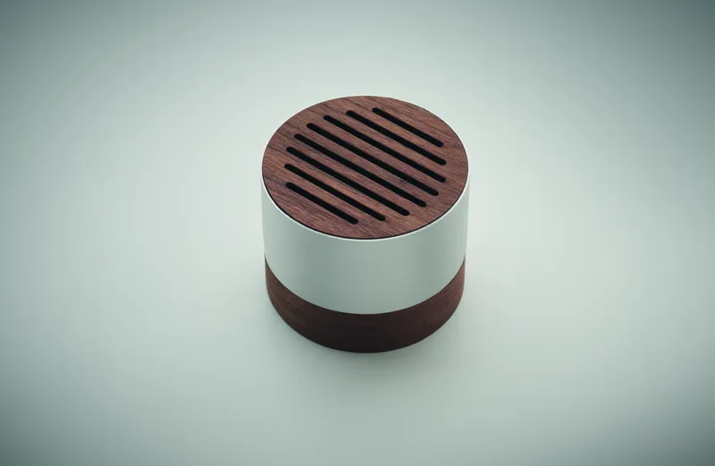5.3 vezeték nélküli hangszóró újrahasznosított alumínium házban, a tetején és talpán diófa részletekkel. 1 újratölthető 300 mAh lítium-ionos akkumulátort tartalmaz. Teljesítmény: 3W, 3 Ohm és 5V. Üzemidő kb. 3 óra.