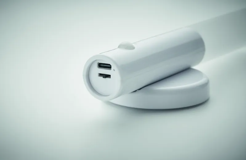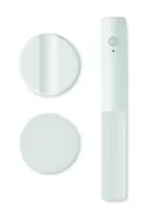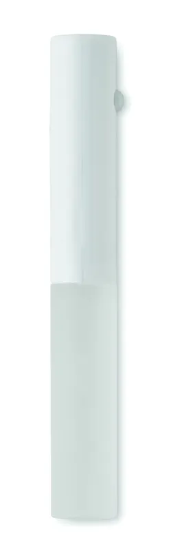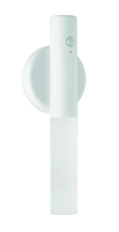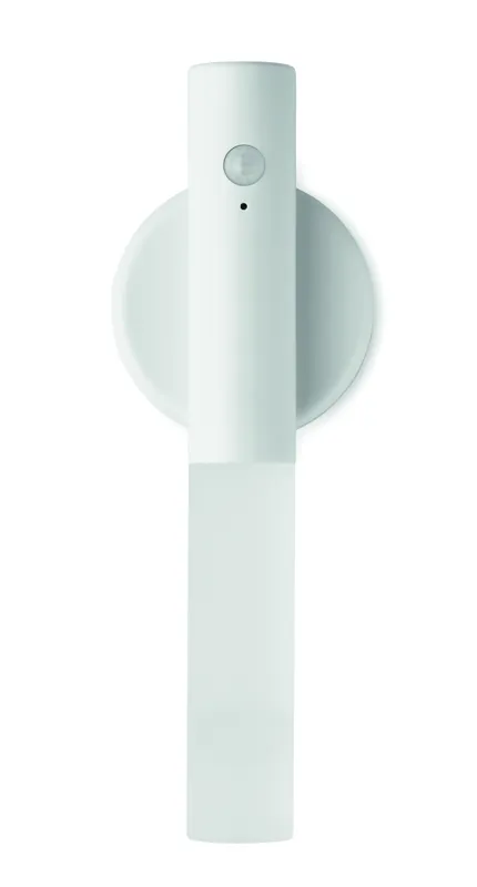 Vészhelyzeti és/vagy mozgásérzékelős, rögzíthető zseblámpa ABS-ből és akrilból, mágneses tartóval. Beépített 300 mAh-s újratölthető akkumulátorral és töltőkábellel. A tartó a mellékelt 3M matricával falra rögzíthető.
