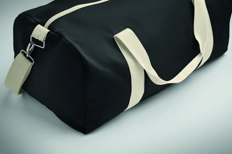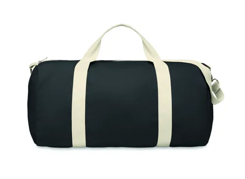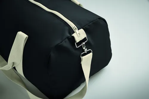 Sporttáska 320 g/m² vastag újrahasznosított anyagból (60% újrahasznosított pamut, 40% újrahasznosított poliészter), pamut fülekkel, állítható és levehető vállpánttal.