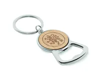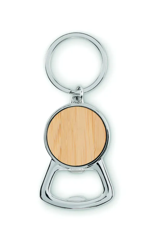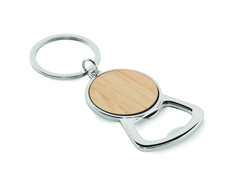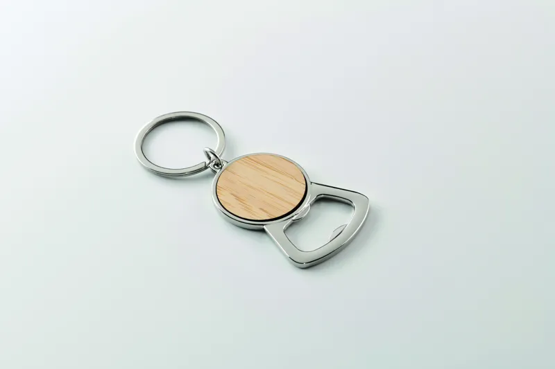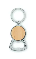 Fém üvegnyitó kulcstartó, bambusz részlettel.