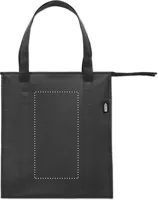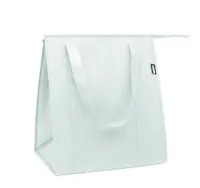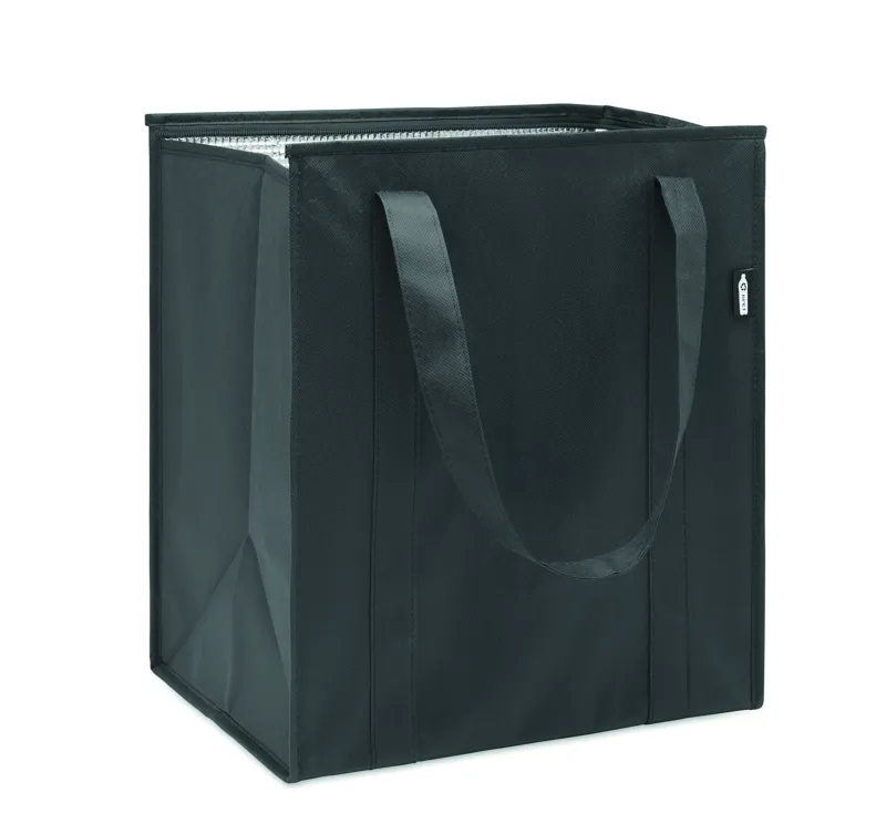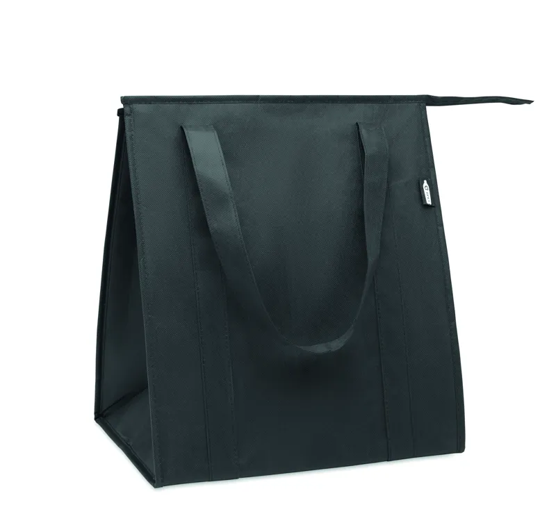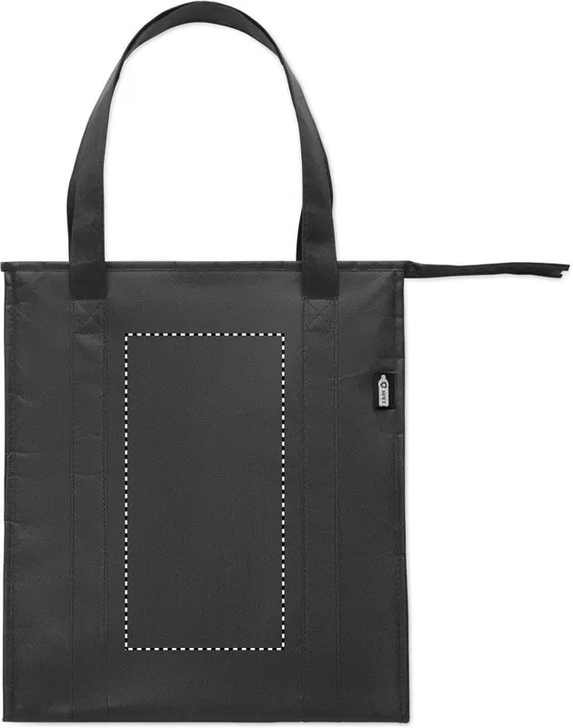 Hűtőtáska 80g/m² vastag, RPET nemszőtt anyagból. Szigetelés: alumíniumfólia. Kapacitás: 25 l. Tetején cipzárral záródó, fő rekesz, az alján kivehető, PP merevítővel.
