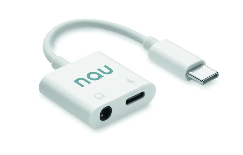 Többfunkciós USB C-típusú és 3,5 mm-es jack audio elosztó ABS-ből.