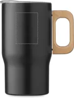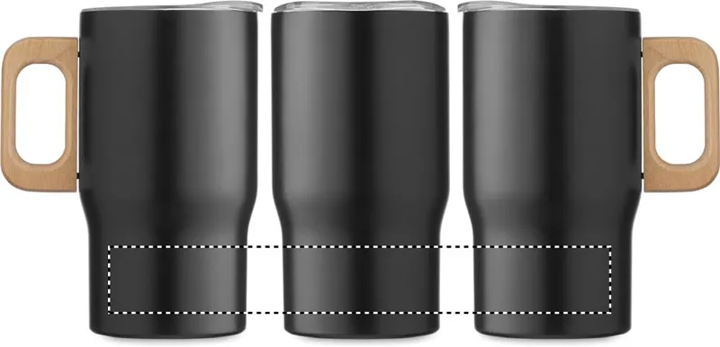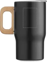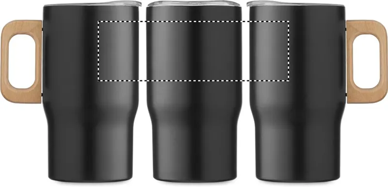 Duplafalú pohár újrahasznosított rozsdamentes acélból (90% újrahasznosított rozsdamentes acél és 10% rozsdamentes acél), fa füllel, a fedélben csúsztatható ivónyílással. Űrtartalom: 350 ml.